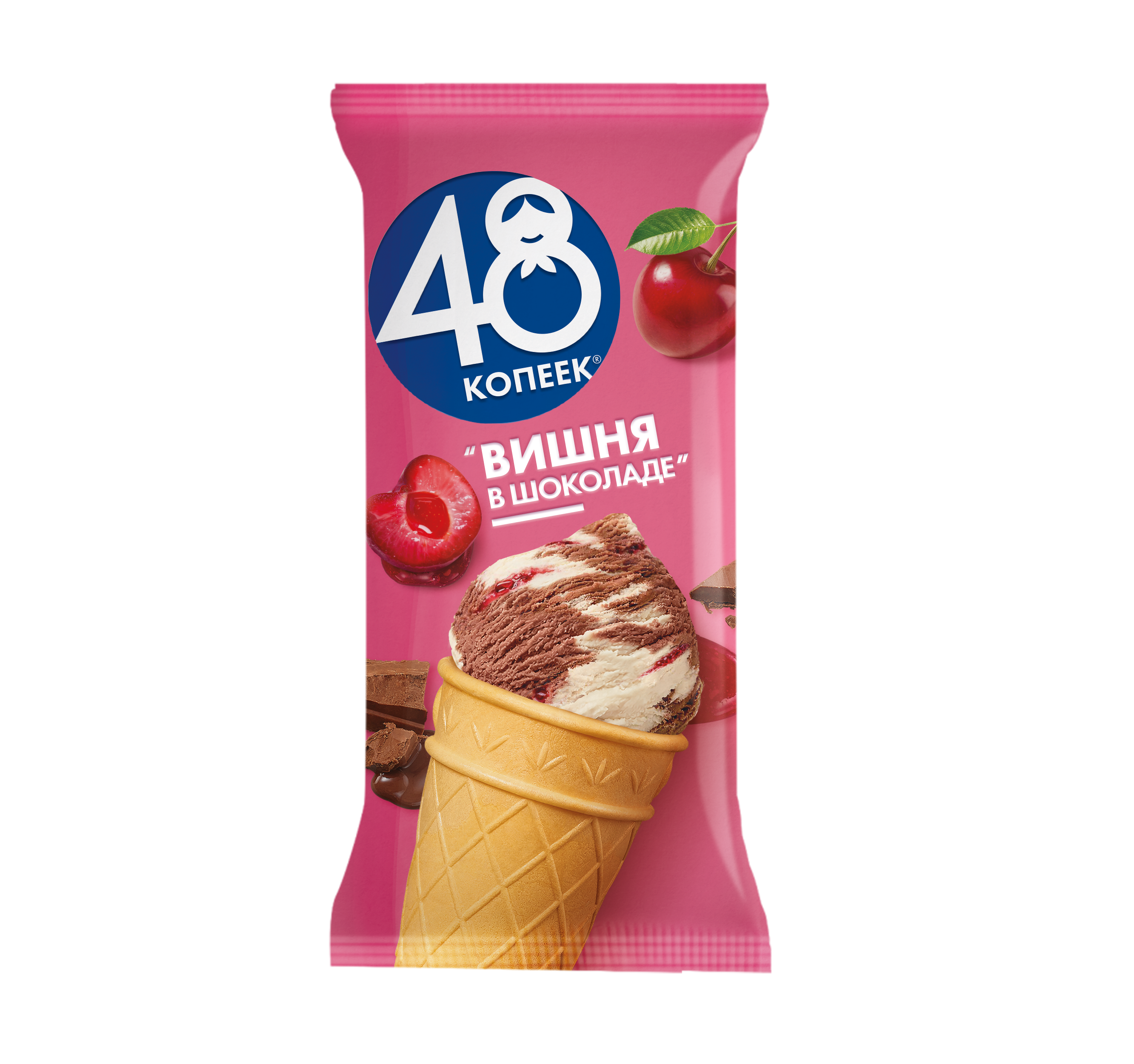 Сочетание классического пломбира со сливочно-шоколадным мороженым и освежающей прослойкой вишневого соуса – идеальный баланс вкусов!
